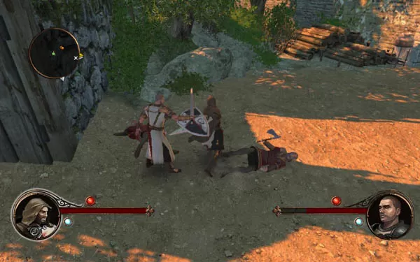 游戏包括两个主角,一名圣殿骑士和他的朋友。玩家独自进行游戏时,可以在这两名角色之间进行切换,另一个角色由AI控制;如果进行合作模式的游戏,则两名玩家一人控制一名角色。
